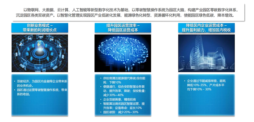 在碳中和的背景下,企业面临用电成本上升、限电频发、能耗双控、碳排双控、碳关税导致产品竞争力下降等问题。通过改变园区用能结构,构建综合能源服务及碳资产管理服务,打造智慧低碳园区,响应国家双碳战略,降低企业用能成本,为企业的可持续发展奠定坚实基础。